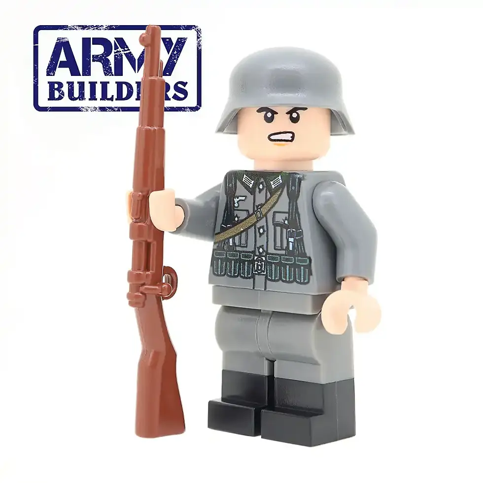The First World War was the deadliest and costliest war the world had seen up to that point. For the first time it was fought in the trenches, at sea and in the air and introduced new weapons including tanks, submarines and aeroplanes. United Bricks First World War British minifigure includes custom printed legs and torso as well as a Sidan gas mask and Brickarms Gunmetal Brodie helmet and SMLE with Bayonet.